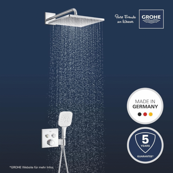 - Công nghệ Grohe TURBOSTAT: điều chỉnh nhiệt độ nhanh chóng và giữ ổn định dù áp lực nước thay đổi