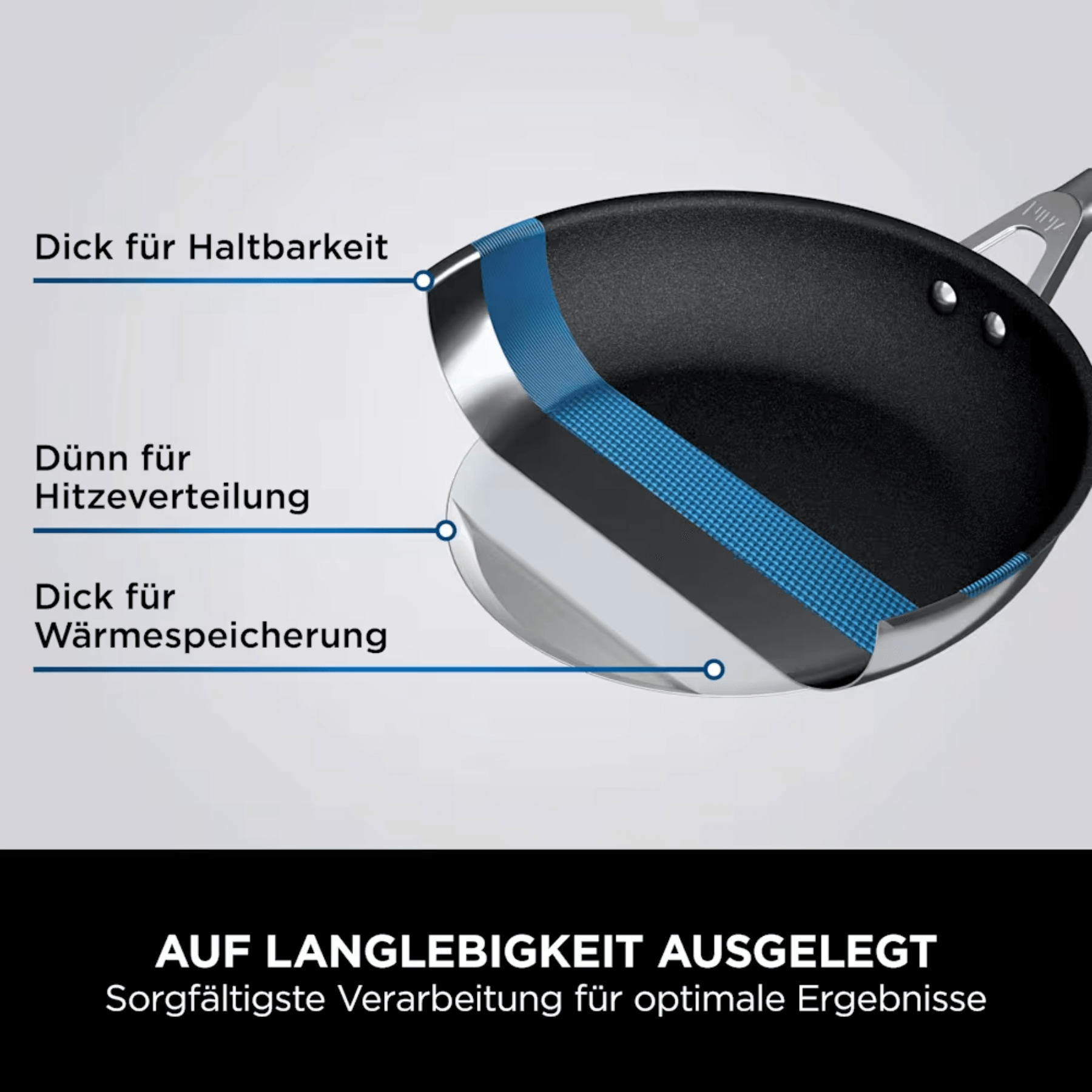 Thân nồi/chảo bằng nhôm đúc chắc chắn, dẫn nhiệt tốt và giữ nhiệt đồng đều. Phù hợp với mọi món ăn từ súp, nước sốt, mì ống, risotto, món chiên xào kiểu Á, thịt nướng, caramel, trứng ốp la đến bánh kếp.