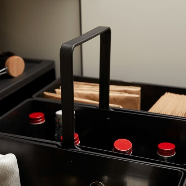 – Hệ thống rác thải với 2 thùng rác (2 x 13 lít ); đối với tủ đế 45 cm có cửa xoay – tự động mở rộng qua cửa bắt.